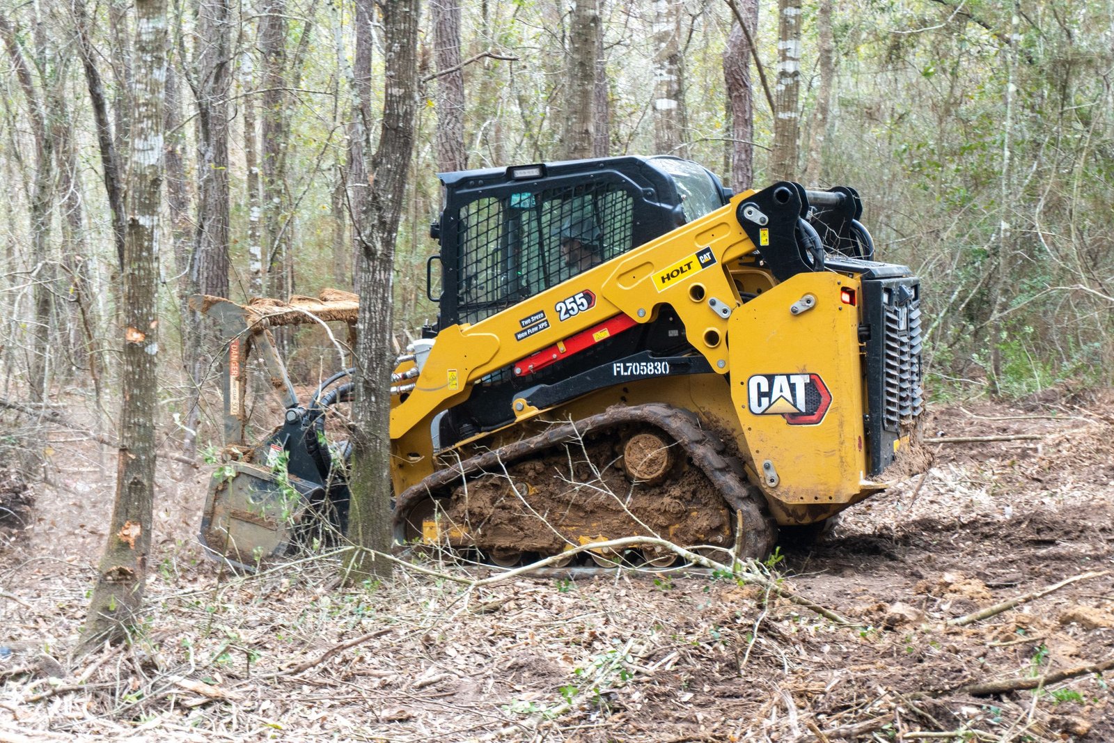 High-flow skid steers with drum/disc mulchers • Saw heads for larger stems • Spot stump grinding • Root raking and screening • Rough/finish grading for pads and drives • Optional seeding/straw for quick stabilization
