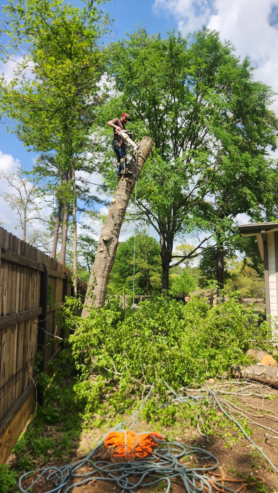 Our process starts with a free on-site visit. We review targets (house, fence, pool), access, fall zones, and equipment needs, then provide a clear scope, price, and schedule. On the day of service, we set protection for turf, beds, and hardscape; use proper climbing/rigging or a lift where needed; and keep the site tidy from first cut to final rake.